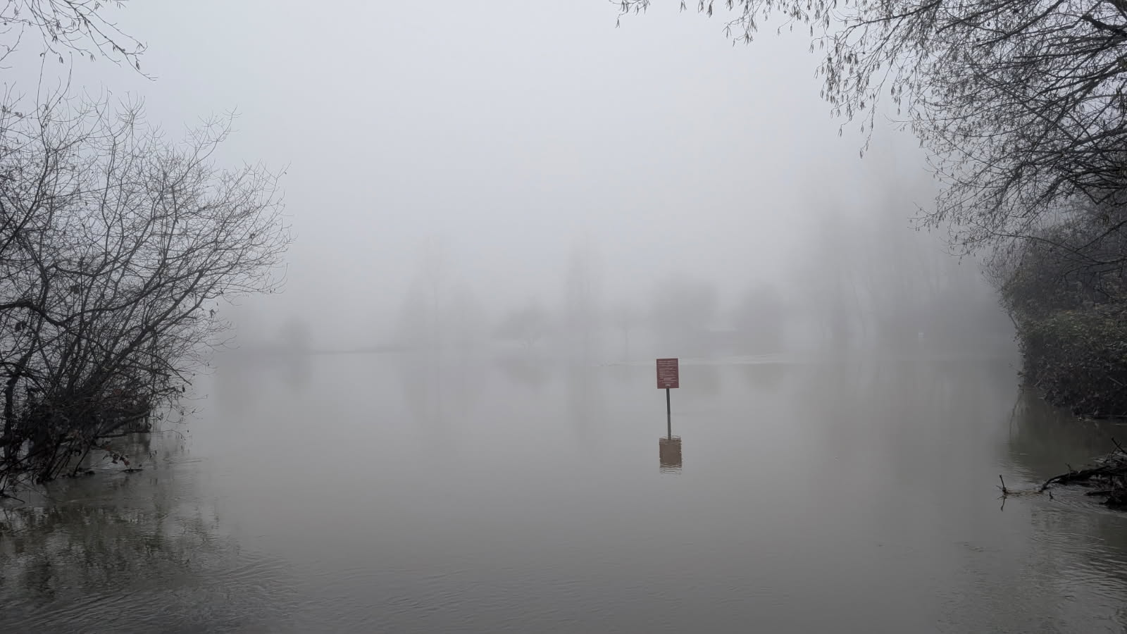 I agree, the morning mist picture is beautiful! I think it’s the entrance to a small park that would normally be next to the river, not in the river.