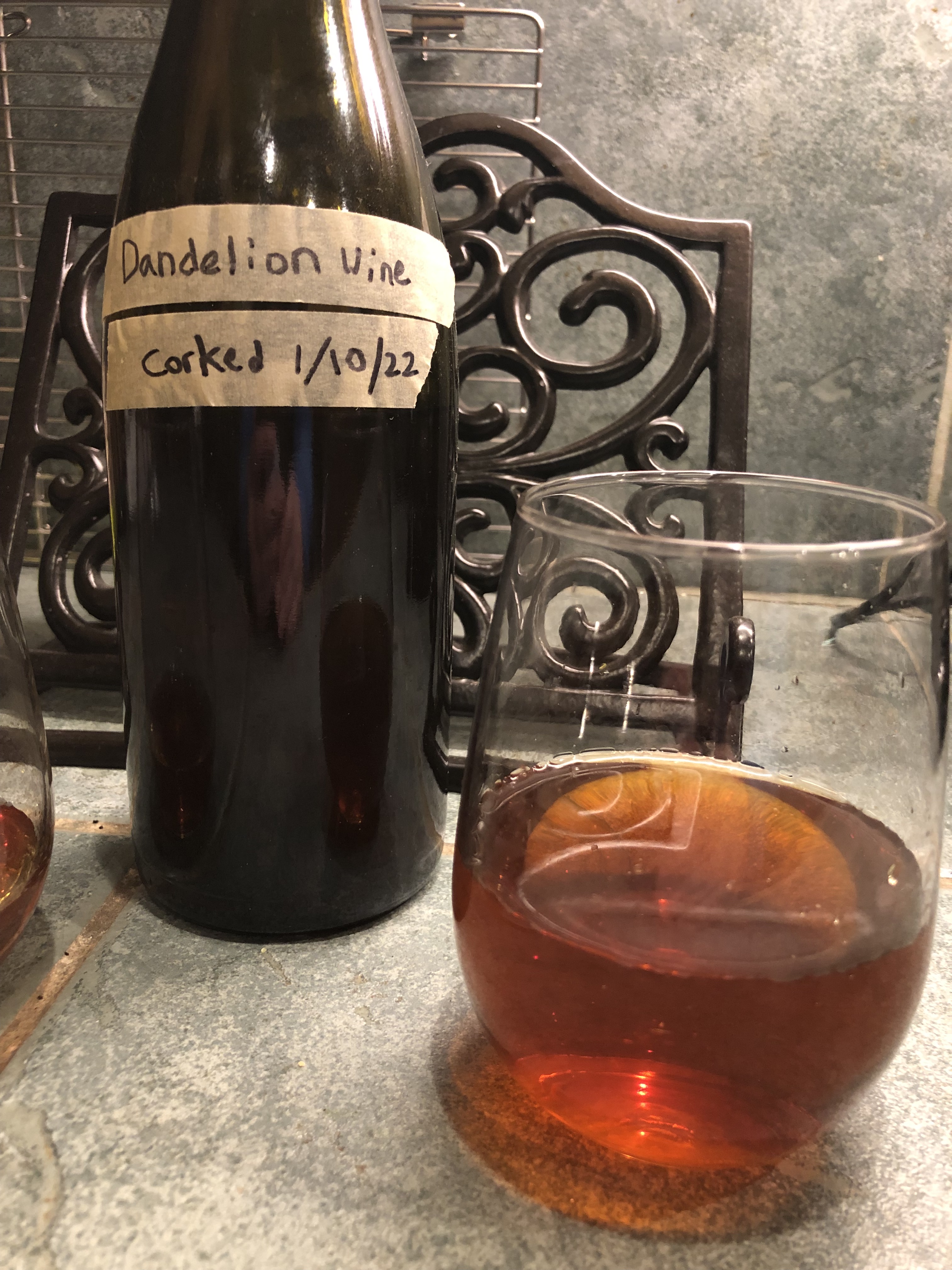 As promised, I uncorked the Dandelion wine last night that my son had helped me harvest for three years ago!