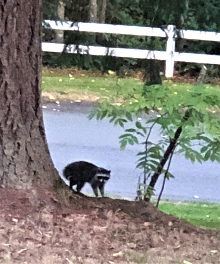 Due to the powerful, inquisitive, and highly evolved sniffers on our wild neighbors we wash our recycling and our garbage to reduce the temptation of smells for the black bears in particular. However, many a crow or posse of raccoons have also torn apart an unattended garbage bag. I once saw a construction worker put his fast-food lunch bag on the hood of his truck while he reached in to grab something else. In that same moment a crow swooped down to steal the bag of food. The bag ripped spilling fries and burger bits all over the road.