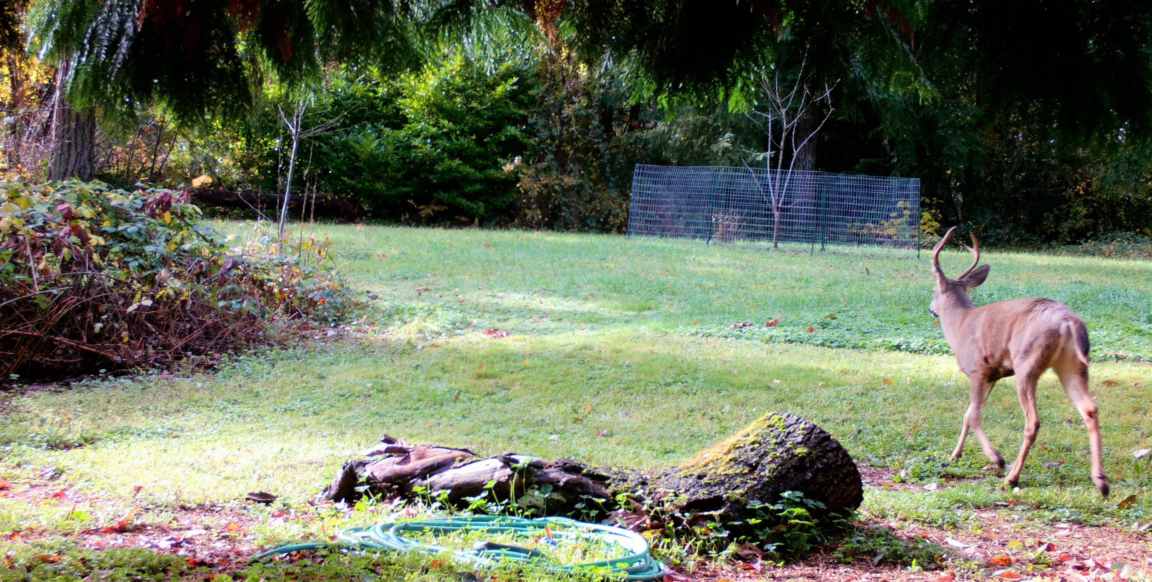 Fall is the best time to plant trees here. They can usually become fairly well established before the first frost and because our winters are predominately rainy, you rarely have to water your new plantings. Small trees do need to be staked to help them keep from getting blown over and if you’re in an area with a dense deer population, chicken wire or other fencing is needed to keep the deer from eating the young buds and leaves in the spring or it being used as an antler rubbing post by the bucks. From my personal, the bucks prefer young cypress trees as their preferred cologne. A new buck has appeared in my yard and I need to get more long stakes to protect some of my new trees and shrubs.